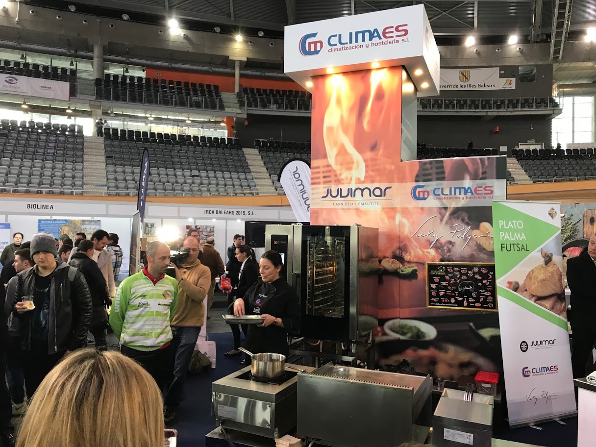 He estado en el stand de Juvimar, empresa mayorista del sector alimentario, cocinando mano a mano con sus miembros. Está especializada en productos cárnicos frescos y congelados, pescado congelado, y embutidos. También hemos compartido espacio con Climaes, una empresa del sector de la climatización y aire acondicionado, que destaca en el mundo del equipamiento hotelero. Ofrece climatización, elevadores, cocina industrial, buffets, aire industrial, equipamiento de hostelería, etc.